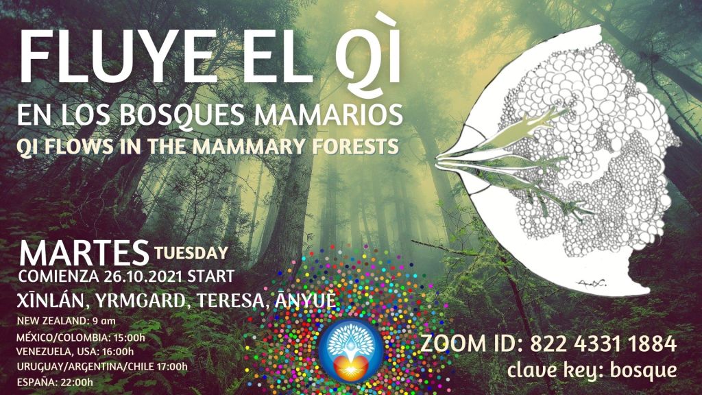 XīnLán, ĀnYuè, Yrmgard y Teresa les invitamos con mucho gusto a participar en esta nueva serie de prácticas sanadoras para hacer que el flujo de Qì en los bosques mamarios sea muy abundante. Todos los martes. Las sanaciones se realizarán entrando en un estado de conciencia pura, MíngJué, y algunos métodos muy eficaces de La Ciencia del Corazón, ZhìNéngQìGōng, La Ciencia del Qì. Todos son bienvenidos, hombres y mujeres, que quieran contribuir con su hermoso estado de conciencia a esta sanación. Muy especialmente, si conoces a alguien que necesite sanar sus senos, por favor, comparte esta información. Encuentros abiertos.
