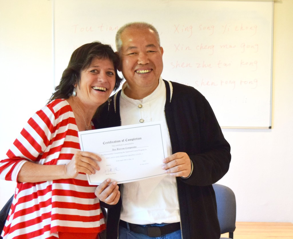 Esta es una hermosa imagen del último encuentro con Liu laoshi en abril en Girona. Este curso de 8 días lo organizaron cuatro profesoras de Zhineng QiGong y fue traducido al español por las cuatro. En él participó gente de España, Portugal, Francia, México, Venezuela y Uruguay.