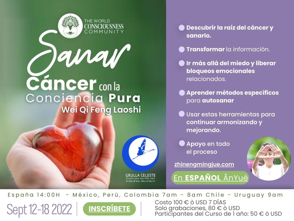 - Después del curso, puedes escuchar y practicar repetidamente estas sesiones de 7 días, para curarte completamente. Podrás contar con el apoyo de la Comunidad HùnYuán LíngTōng .Grulla Celeste- y de todo el Campo de Conciencia Mundial.