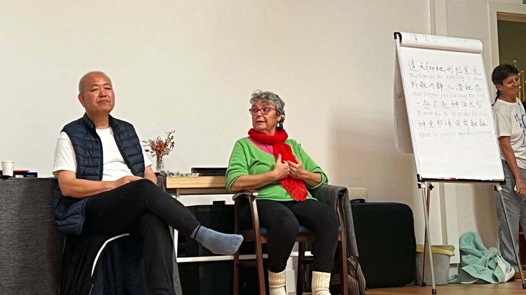 Lo primero que hizo Jianshe al comenzar el encuentro fue cambiar el título, pasó de «Sanar ahora» a «Ahora celebramos». Lo habíamos acordado previamente, pero no era lo apropiado para este espacio-tiempo. Este cambio caló nuestros corazones.