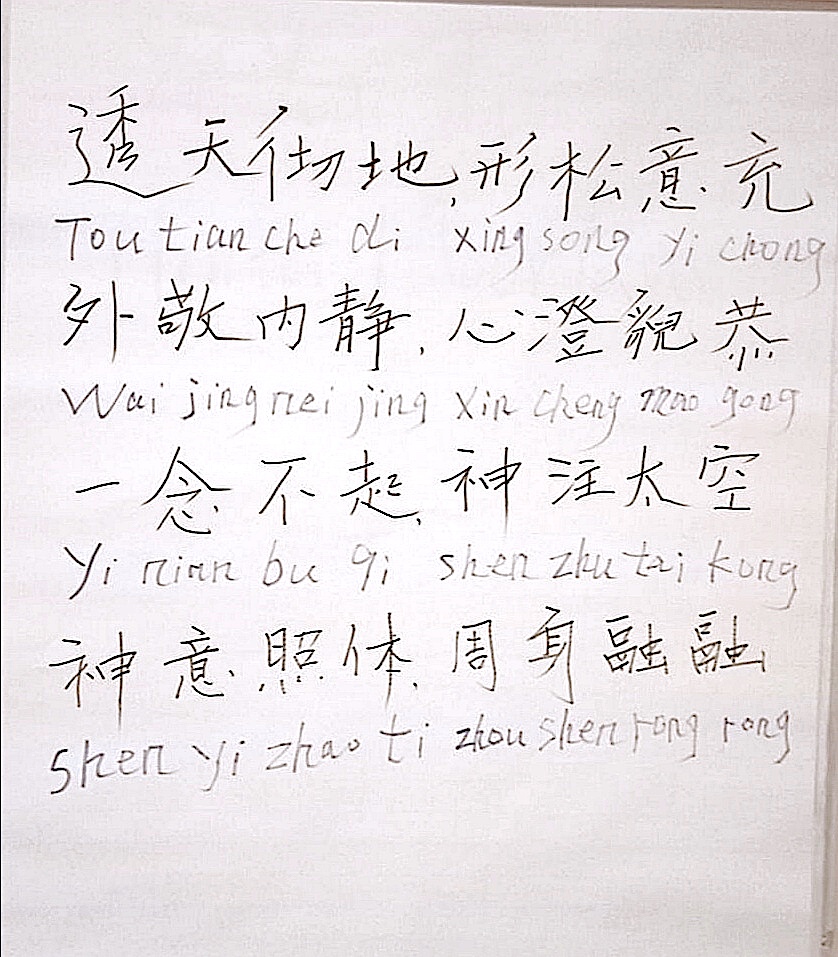 Jianshe nos explica que, Ba Ju Kou Jue, los 8 versos o frases, nos colocan en una alta dimensión. El primer verso ahora es diferente a como se lo decía antes.