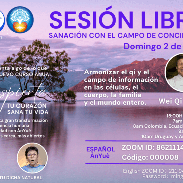 SANACIÓN EN EL CAMPO DE CONCIENCIA con Wei Qifeng – Traduce al español ĀnYuè Armonizar el qi y el campo de información en las células, el cuerpo, la familia y el mundo entero. En inglés ZOOM: https://zoom.us/j/2119452619?pwd=L0V0TVZuQmZmcjJVVjR5VGFPdHpMUT09 ID:211 945 2619 Password:mingjue000 En español con ĀnYuè ZOOM: https://us02web.zoom.us/j/86211140928?pwd=aERUT0xlcFByanM2ZG5kdG9Gcy9GUT09 ID: 862 1114 0928 Contraseña: 000008