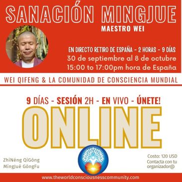 9 días – sábado 30 de septiembre al domingo 8 de octubre Invitación: El Maestro Wei y más de cien maestr@s y practicantes de Mingjue Gongfu se reunirán en España, utilizando el gran campo de consciencia mingjue para hacer sanación para ti. Un solo corazón, una intención. Tú potenciarás esta unicidad aportando tu mejor información … More RETIRO de SANACIÓN ONLINE
