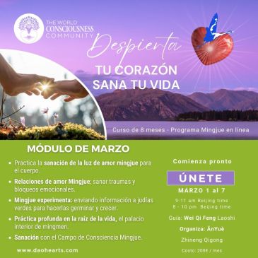 Un nuevo módulo del 1 al 7 de marzo, al que puedes integrarte con facilidad, disfrutando del apoyo de una comunidad cada vez más consciente y eficaz. Te invitamos de corazón a unirte a esta experiencia que ha cambiado nuestra vida. Inscríbete ya, completa el formulario: CURSO MARZO 1 al 7