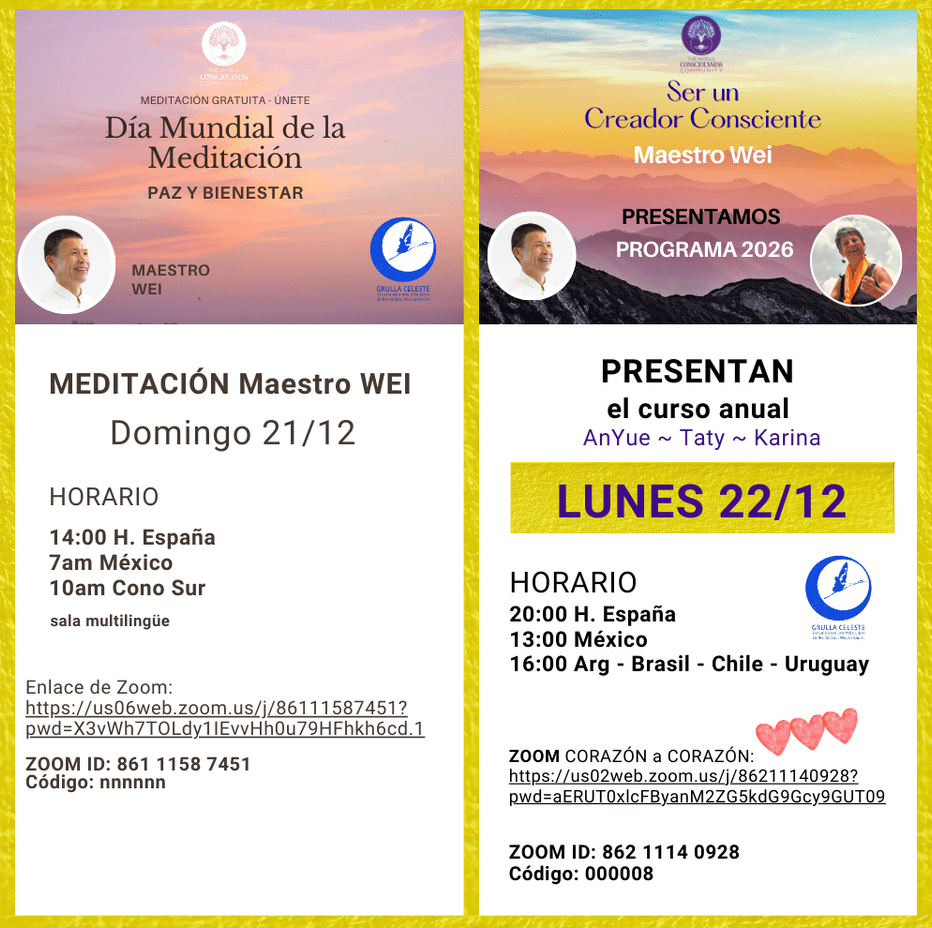 Esperábamos sin esperar esta hermosa meditación del Maestro Wei y The World Consciousness Community